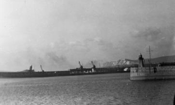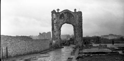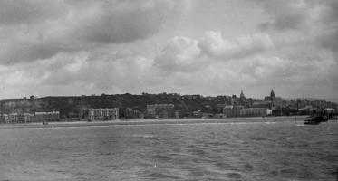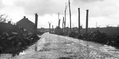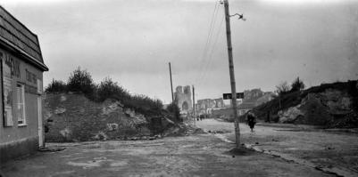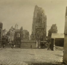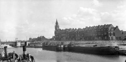 Calais’s magnificent Hotel de Ville tower at the end of a tenement row which no