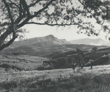 entered the Woodbush. A high blue ridge - The Iron Crown Mountain behind